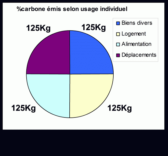 Donc en première approximation voilà ce que devrait etre la répartion du quota individuel de 500 kg de carbone par an: