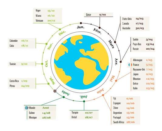 5 mai 2018 : Depuis cette date, la France (chacun de nous) a épuisé les ressources annuelles que l'environnement est capable de renouveler chaque année. On parle beaucoup de la dette financière, qui ne concerne que des arrangements entre etres humains, mais on oublie la dette écologique qui se paie automatiquement en catastrophes naturelles et effondrement.