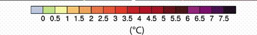 On voit qu’une moyenne de +2,8°C, par rapport à 1990, est très inégalement répartie. Les océans sont plus inertes thermiquement que les continents qui vont subir en moyenne + 3,5°C.