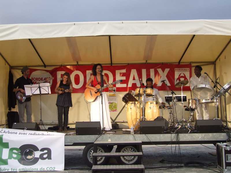 Voici des images de la Velorution climatique organisée ce jour à Bordeaux et ayant réuni pres de 300 cyclistes (un tacain a decompté au départ 230 participants) pour un itineraire circulaire (revolution) en ville, suivi de concert brésilien (maracatu de Bordeaux et la chanteuse Ale Kali et ses musiciens).