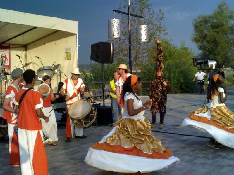 Heureusement la pluie n'a pas refait son apparition, et les participants ont pu ensuite accompagner le Maracatu (groupe de percuissions) et écouter le concert d'Ale Kali.