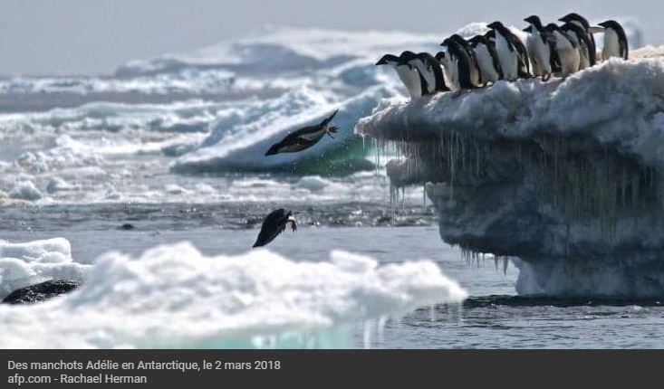 Je ne pense pas que les manchots se jettent à la mer à cause de ce signal d'alerte, mais CNN le prend tres au sérieux dans un article en anglais tres documenté.