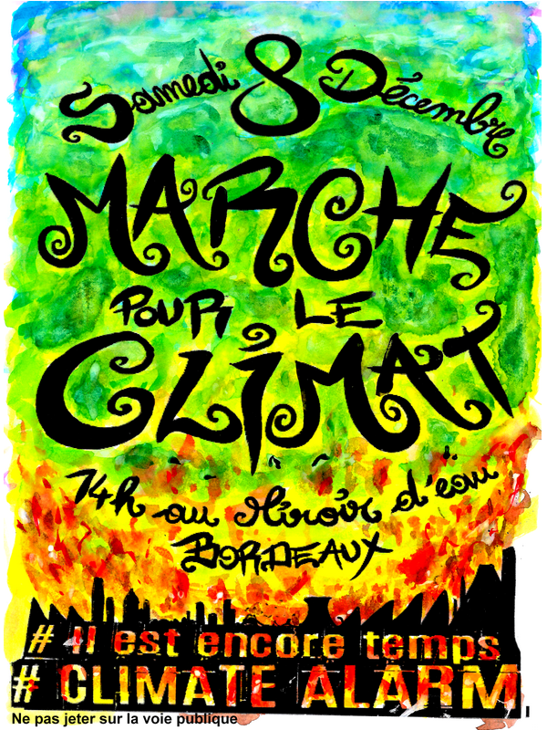 Dimanche 8 décembre  Marche mondiale pour le Climat, pendant la COP25. A Bordeaux le RV est à 14h au Miroir d'Eau. Voici  l'affiche!