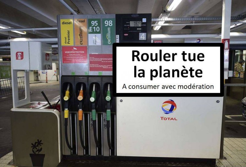 Rouler tue la planète ! A quand un avertissement sur les pompes à essence comme sur les paquets de cigarette ?